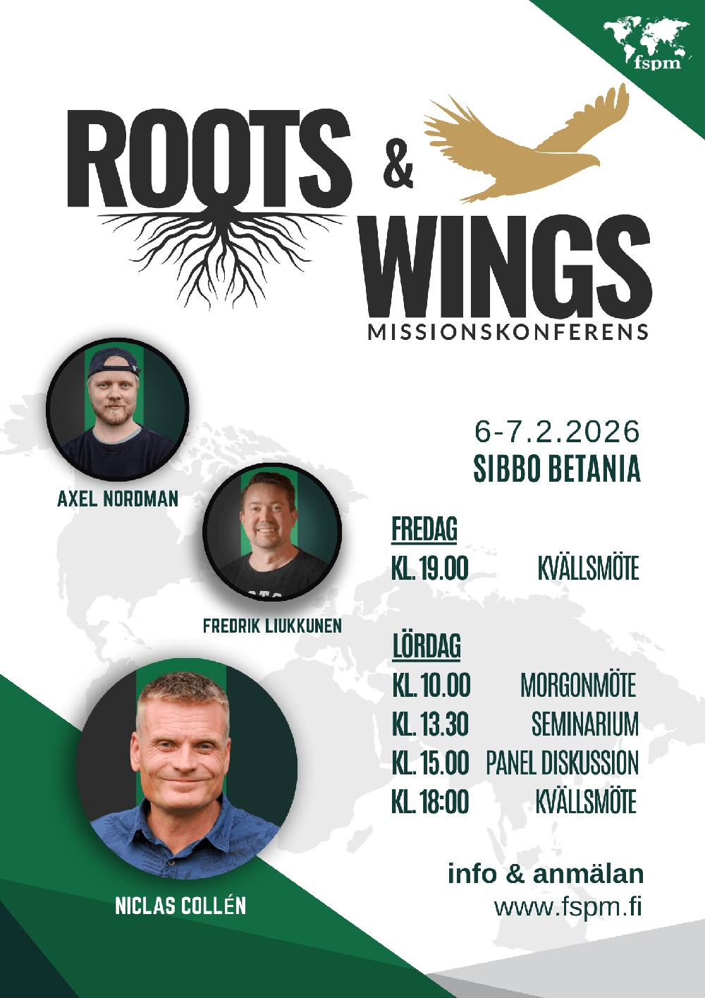 I samband med Missionskonferensen “Roots & Wings” hålls två kvällsmöten som är öppna för alla. Det behövs ingen anmälan, det är bara att dyka upp…