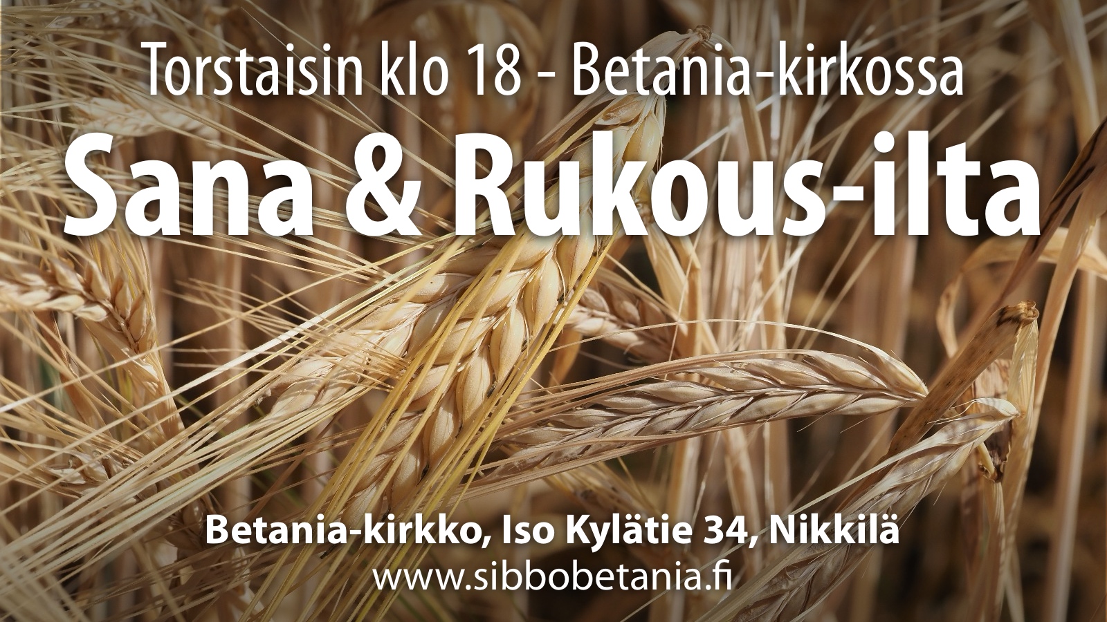 Betania-seurakunnan suomenkieliset Sana- ja rukous-tilaisuudet torstaisin klo 18