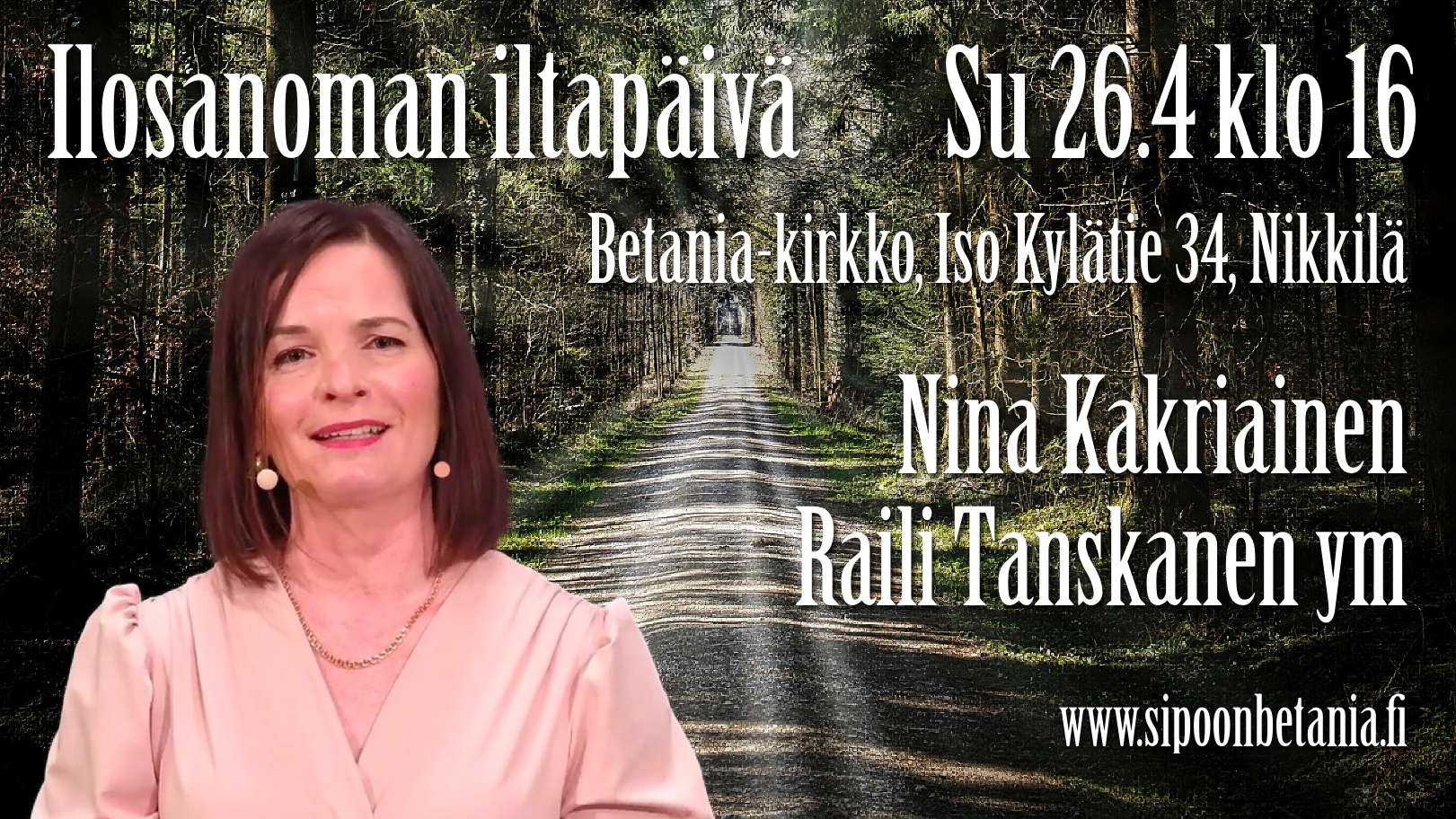 Tervetuloa Betaniakirkkoon sunnuntaina 26.4 klo 16!