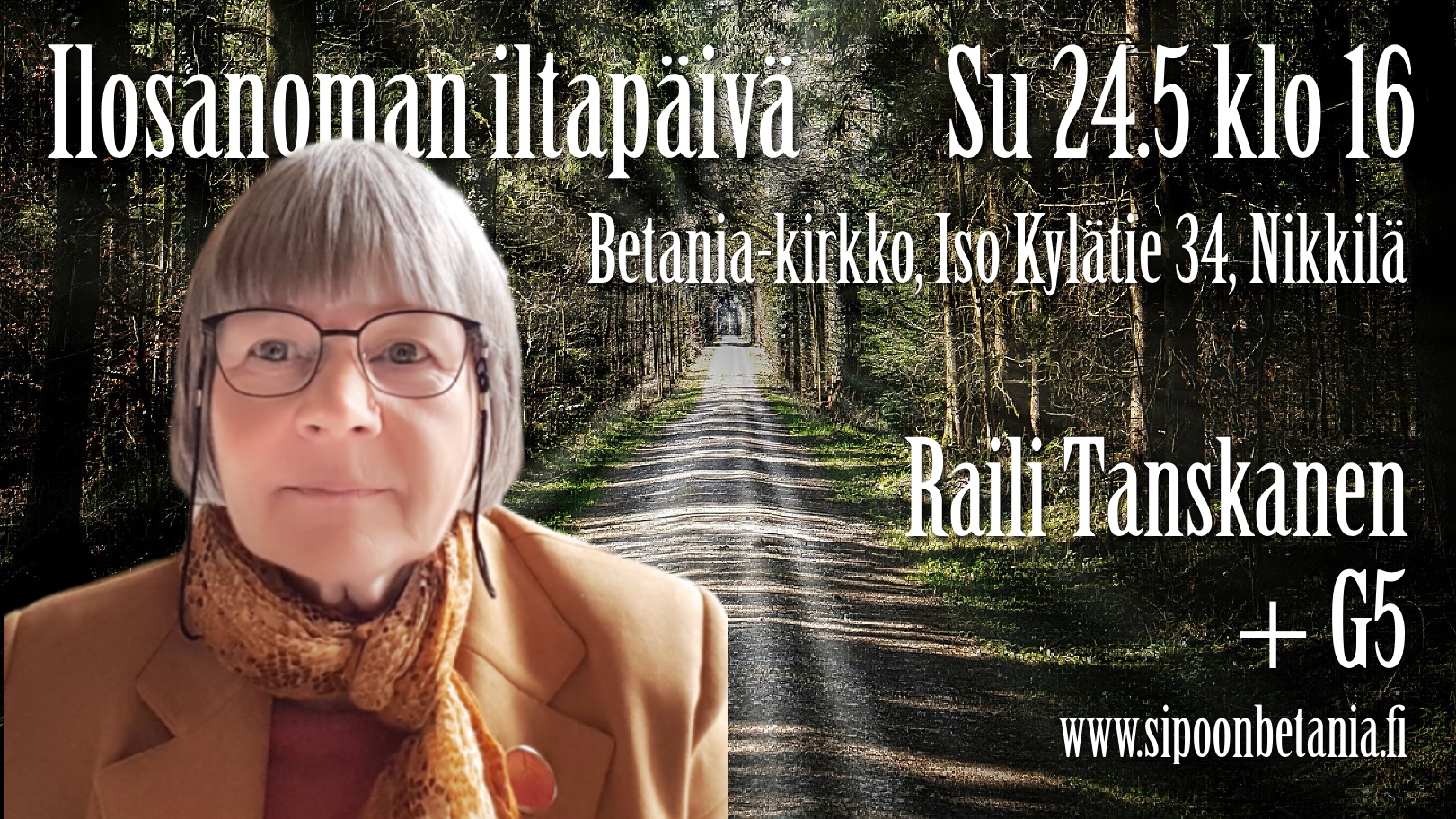 Tervetuloa Betaniakirkkoon sunnuntaina 24.5 klo 16!